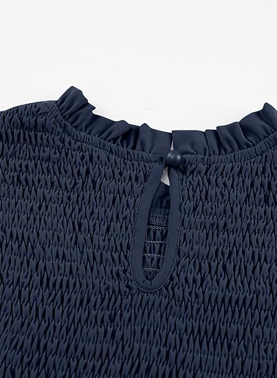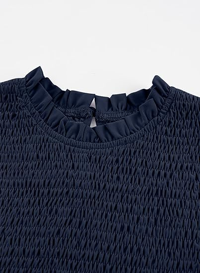 - FEATURE: Plain Solid Color, Puff Long Sleeve, Ruffle Crew Neck, Elastic Pleated Smocked Bust, Back Keyhole, Loose Fit Girl Flowy Outfit.